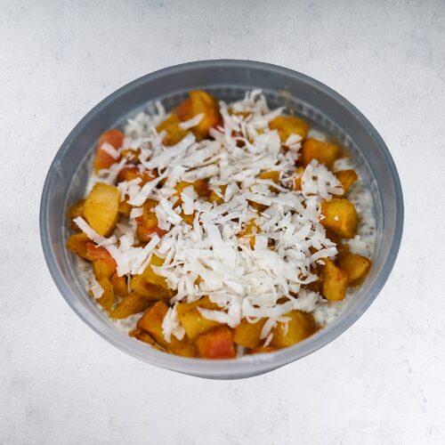 5 ingredient coconut chia pudding is made of organic coconut cream, coconut extract, chia seeds, unsweetened coconut flakes. No added sweeteners.
